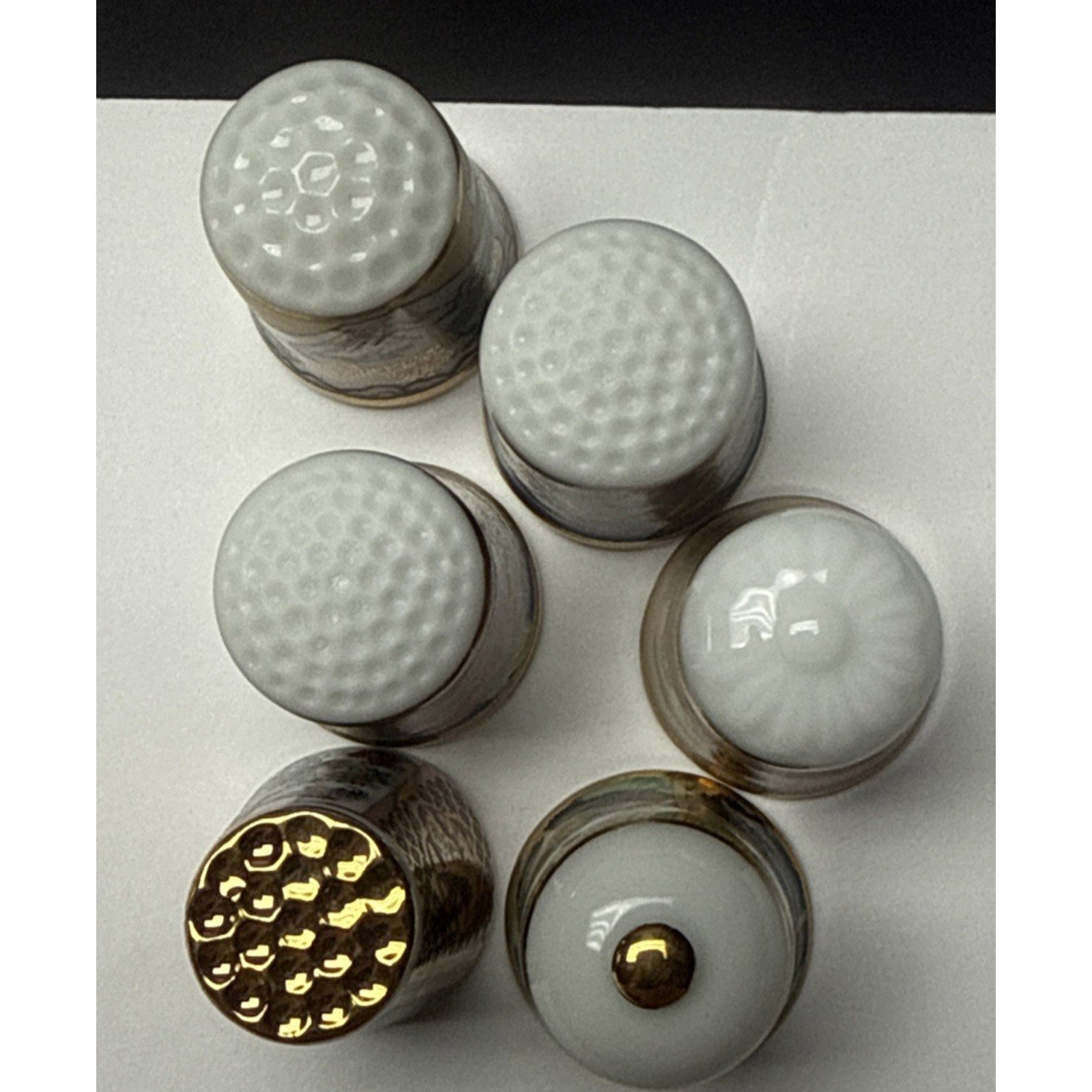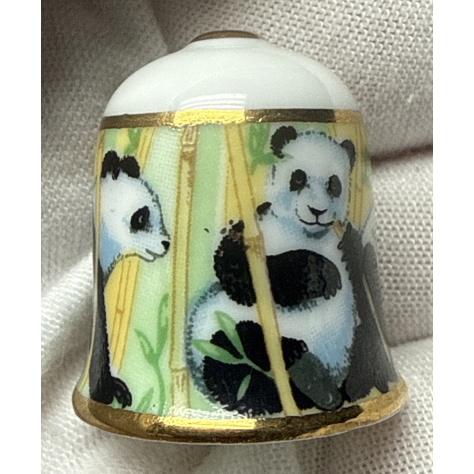 Vtg Lot of 6 TCC Japan Thimbles Porcelain Panda Floral Takiro Shibata Shozan