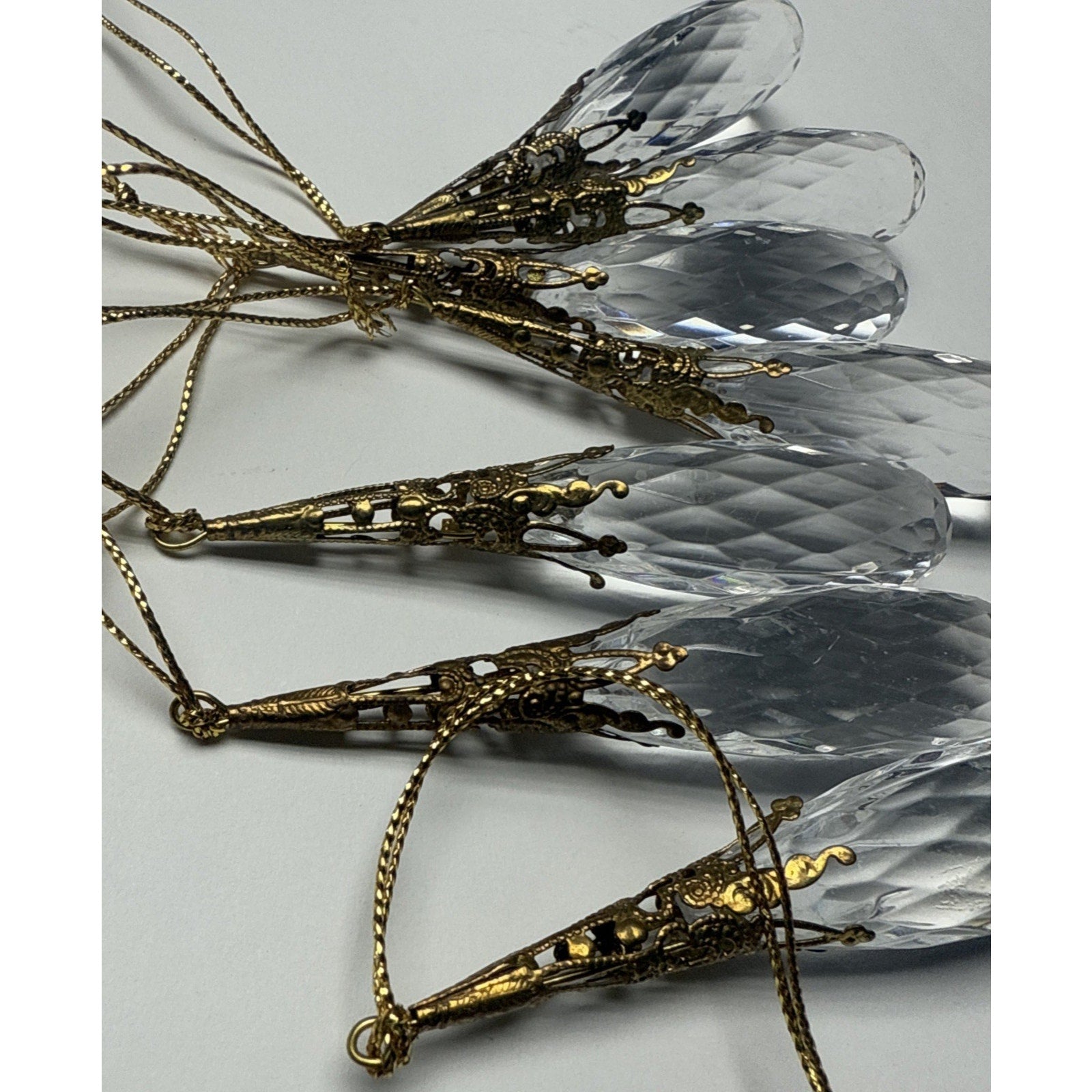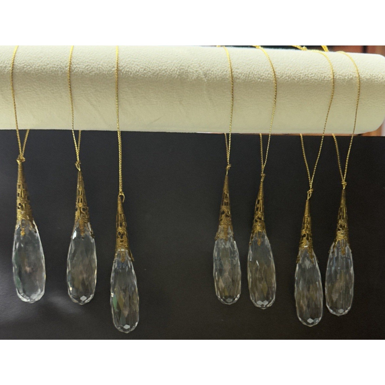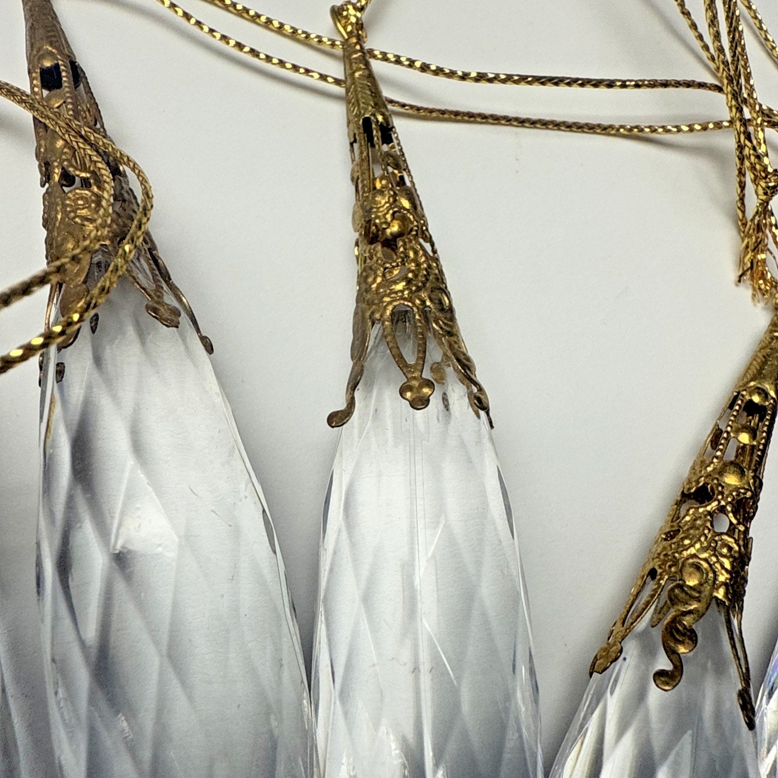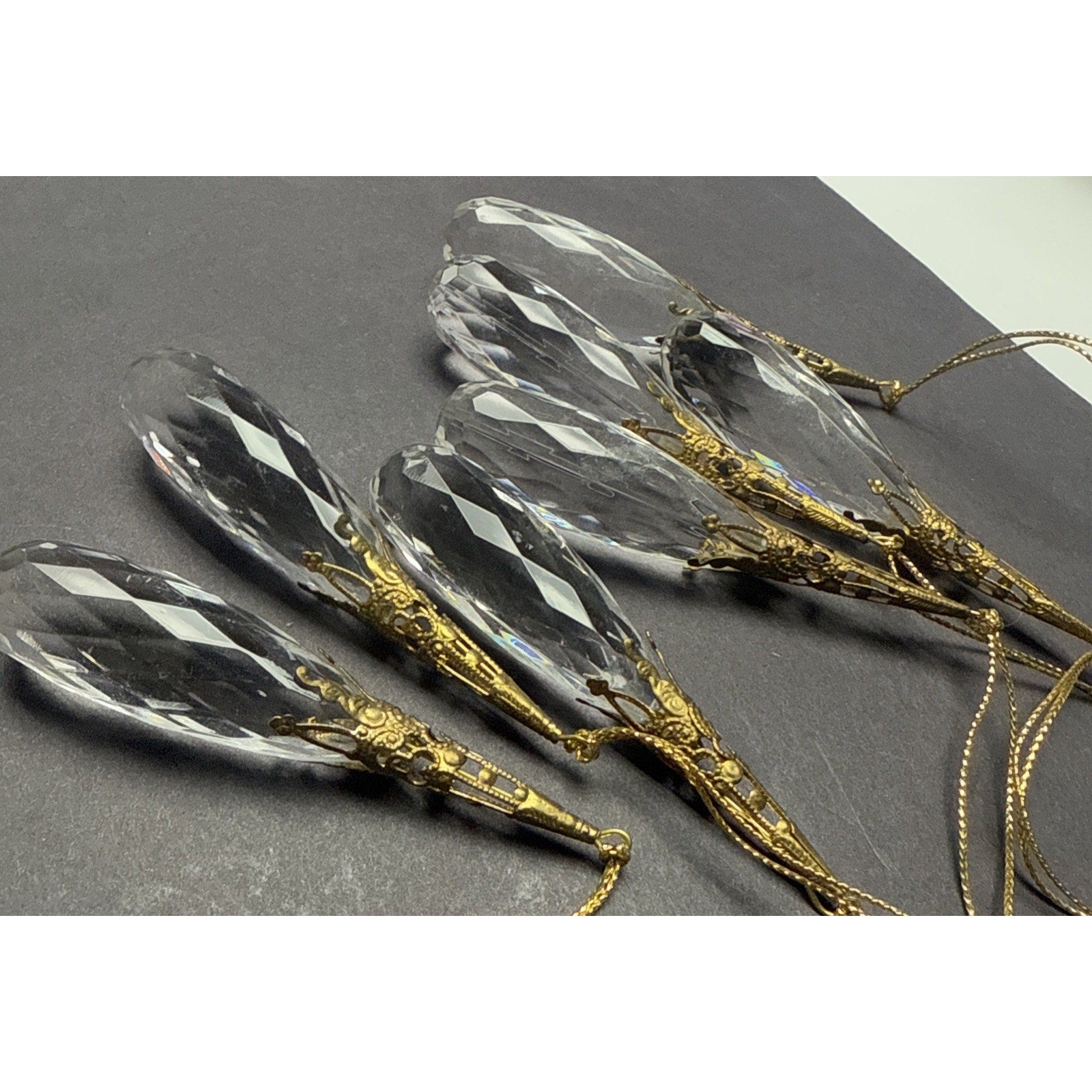 Vtg Lot of 7 Teardrop Faceted Acrylic Gold Embellished Hanging Ornaments As Is