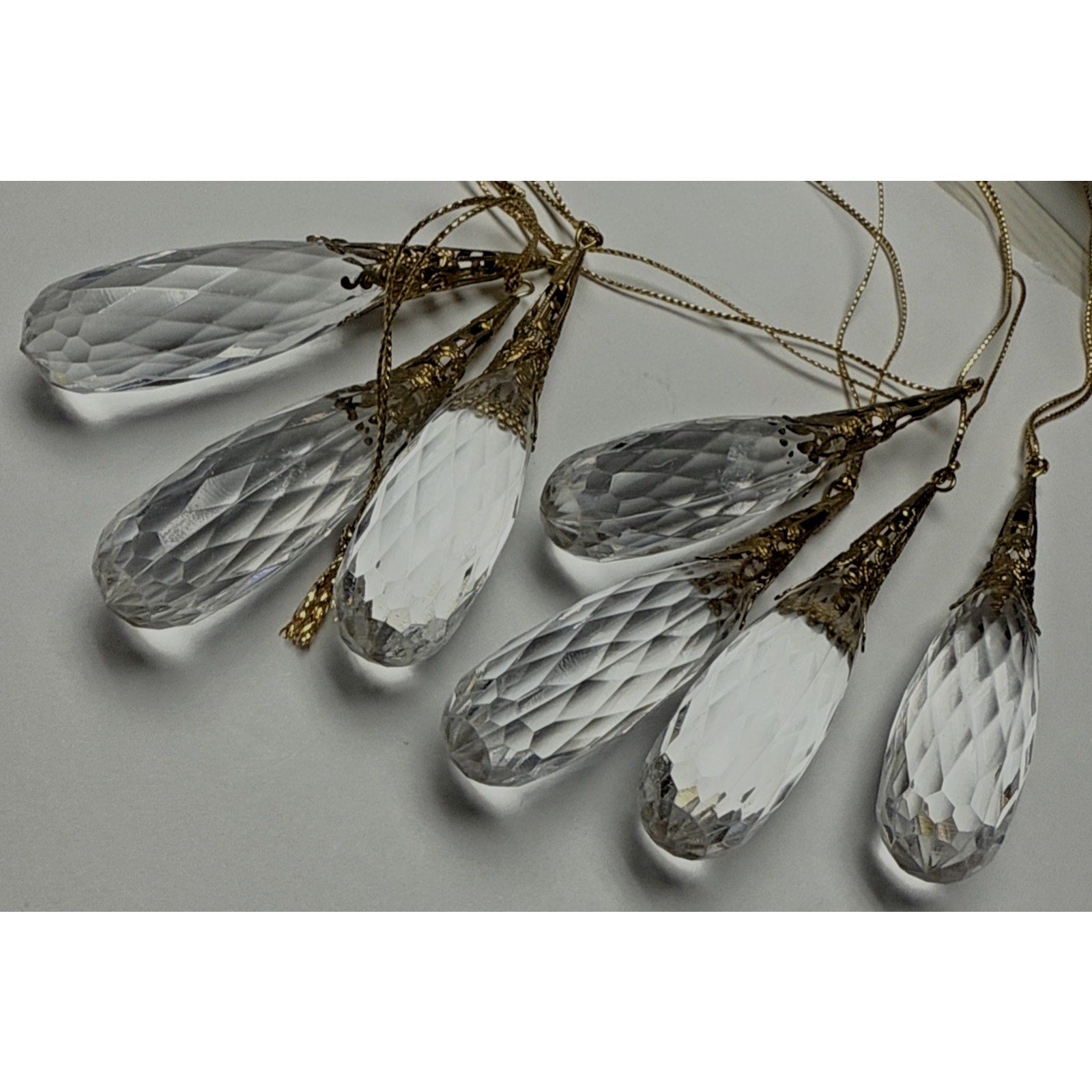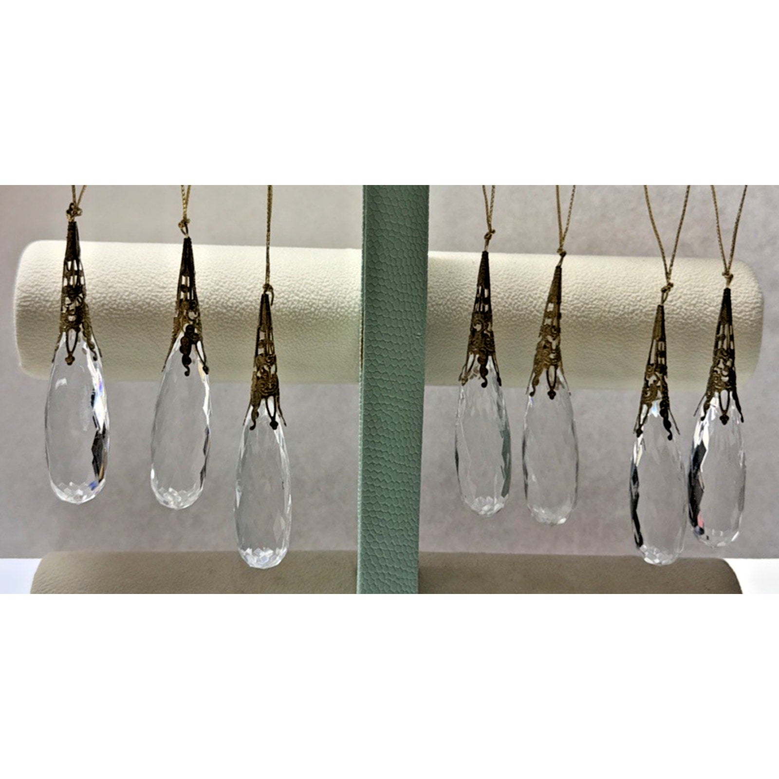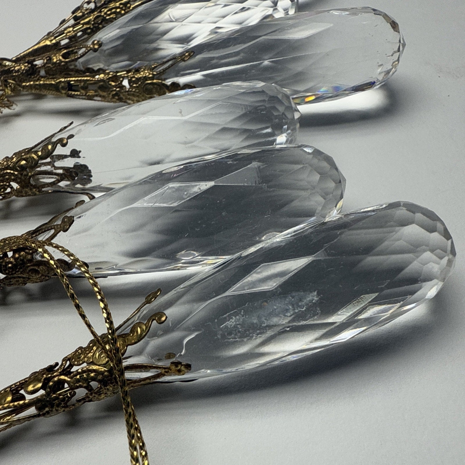 Vtg Lot of 7 Teardrop Faceted Acrylic Gold Embellished Hanging Ornaments As Is