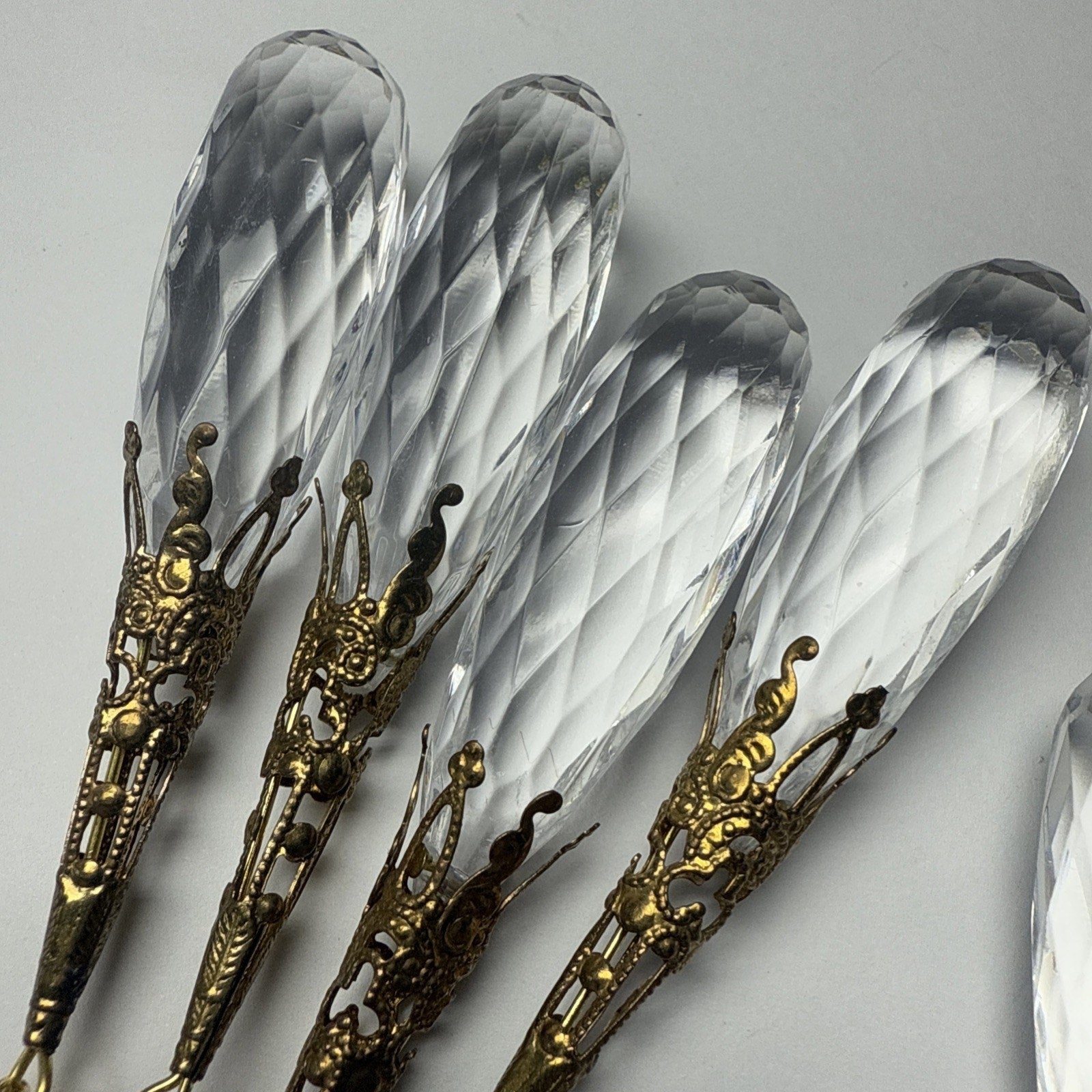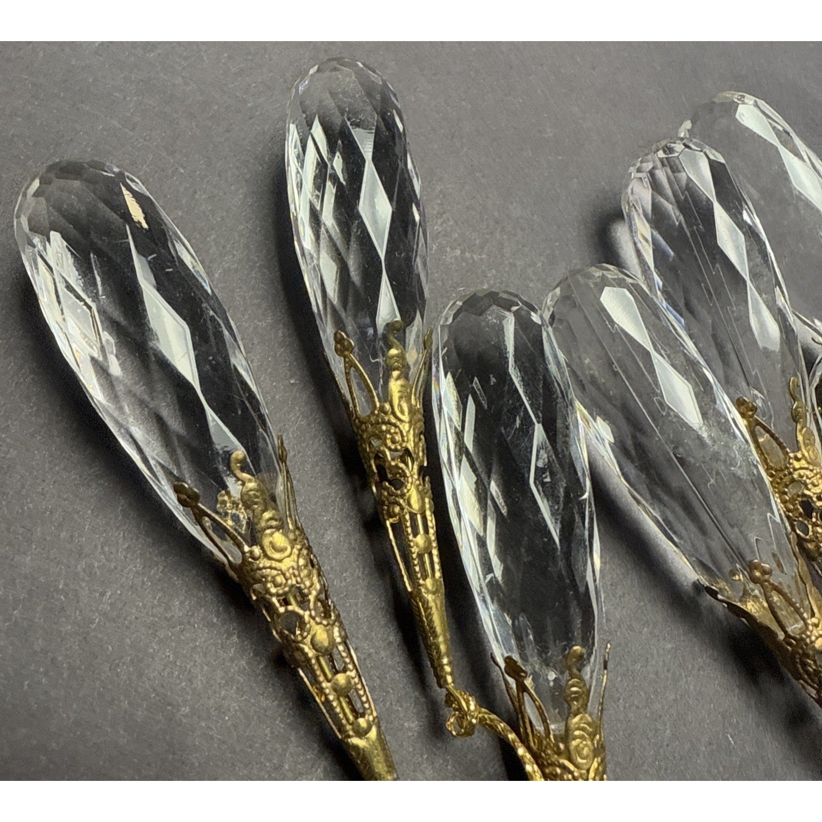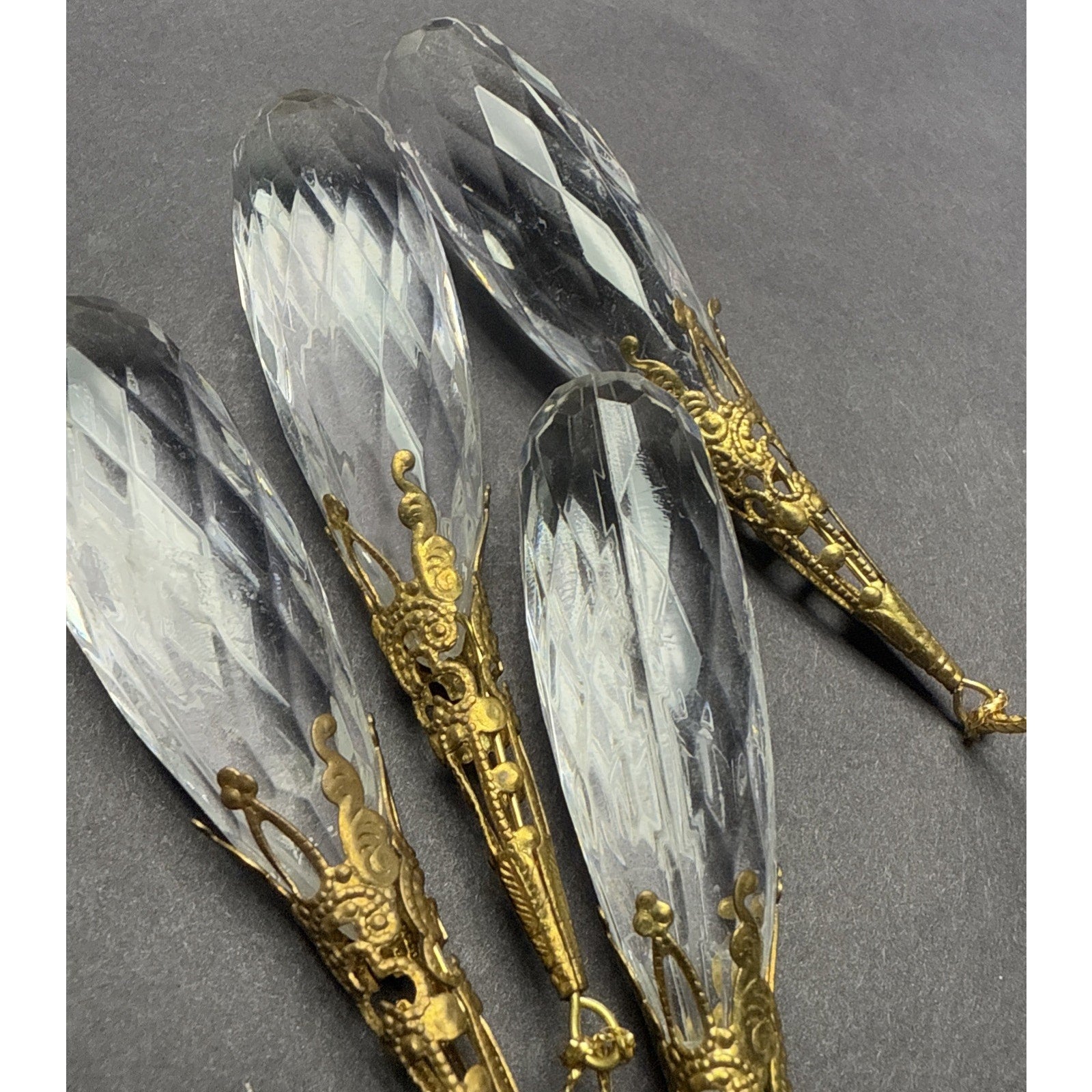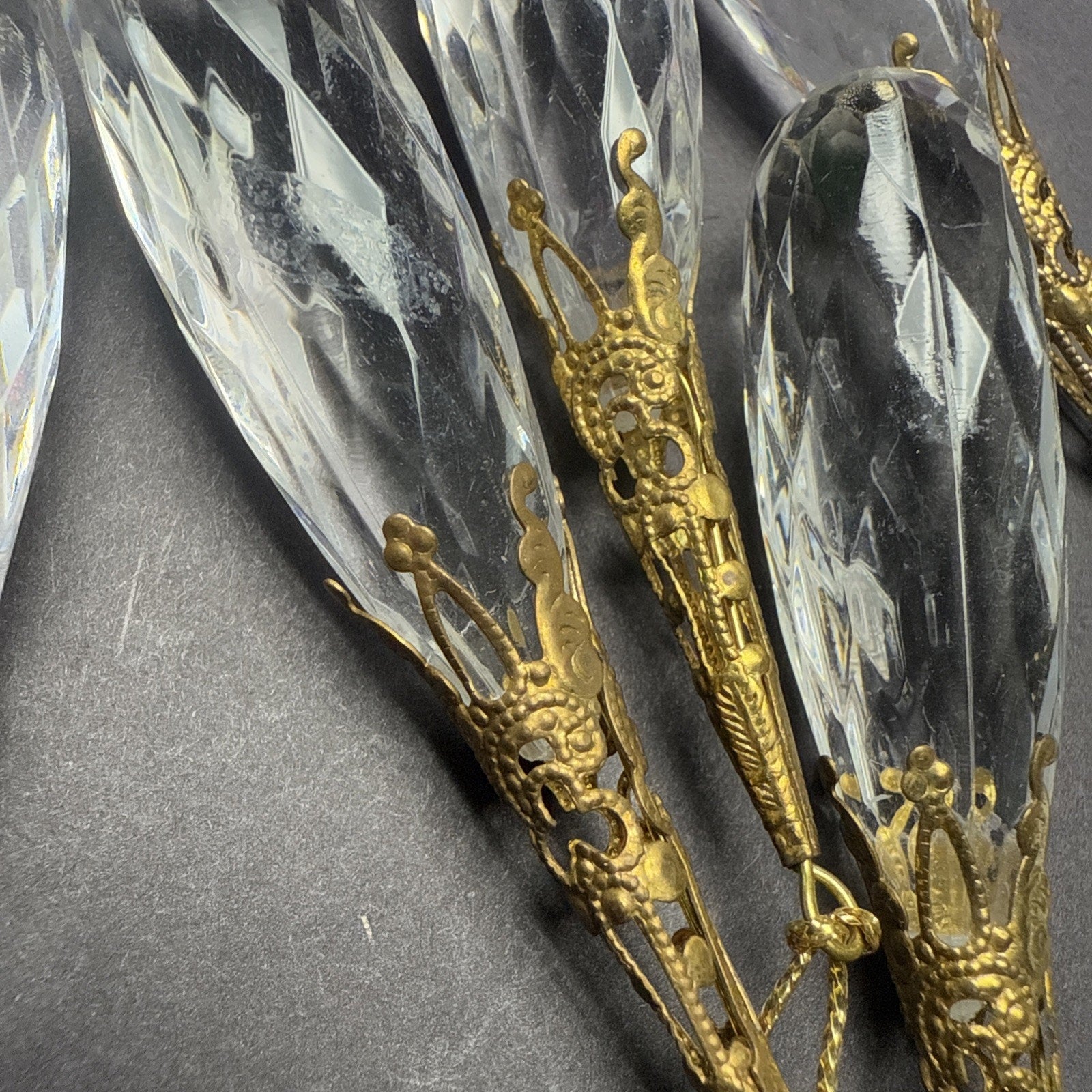 Vtg Lot of 7 Teardrop Faceted Acrylic Gold Embellished Hanging Ornaments As Is