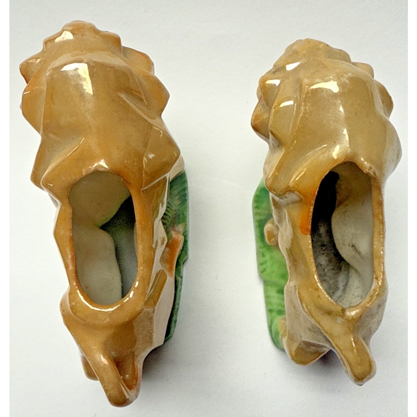 Vtg MCM Lot Of 2 Lion Pin Cushion Lusterware Painted Japan READ