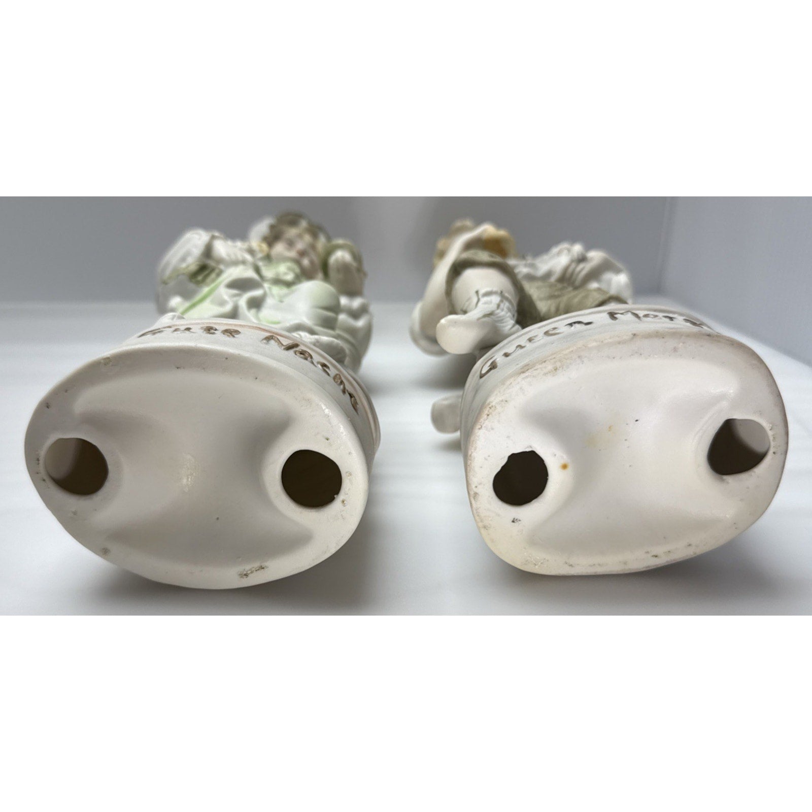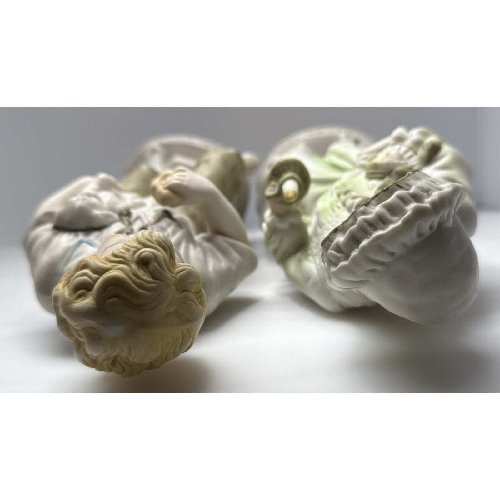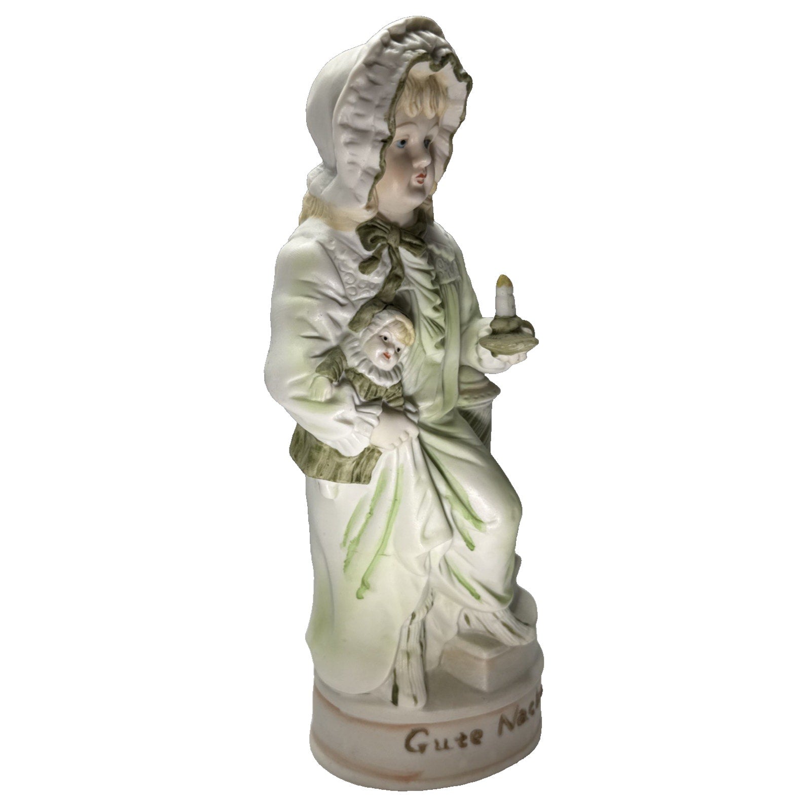 Vtg Pair Germany Bisque Porcelain Figurines Good Night Morning Boy Girl Puppy