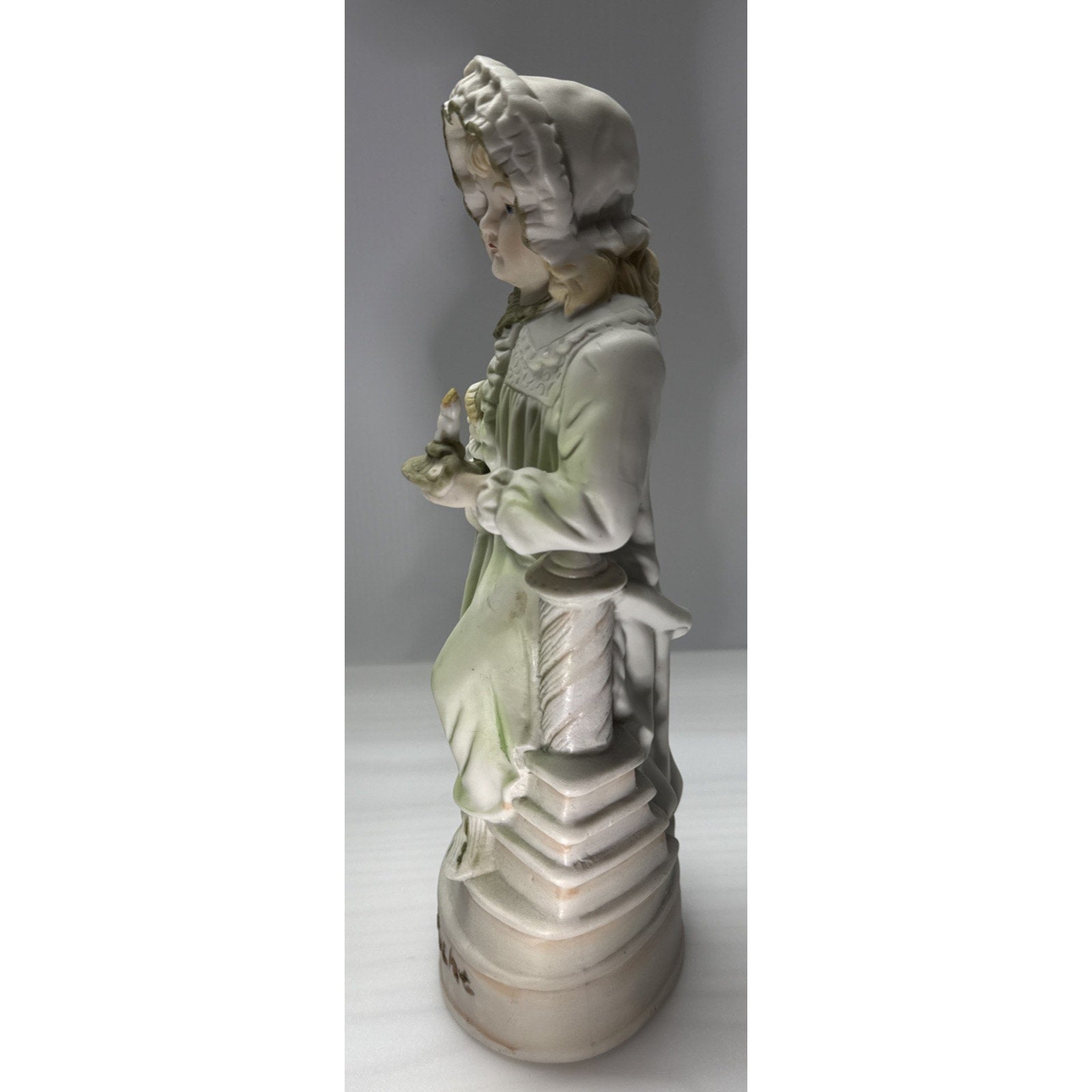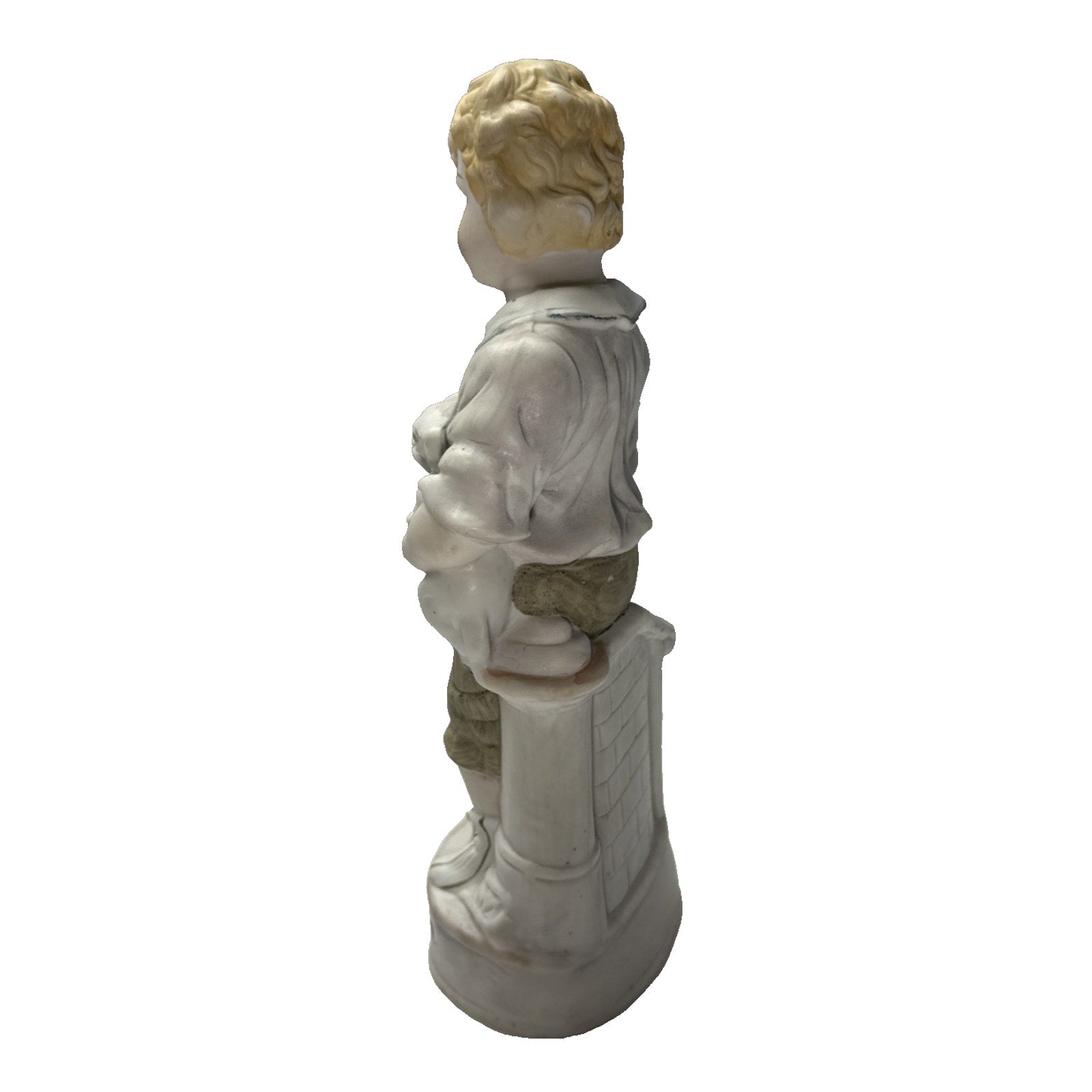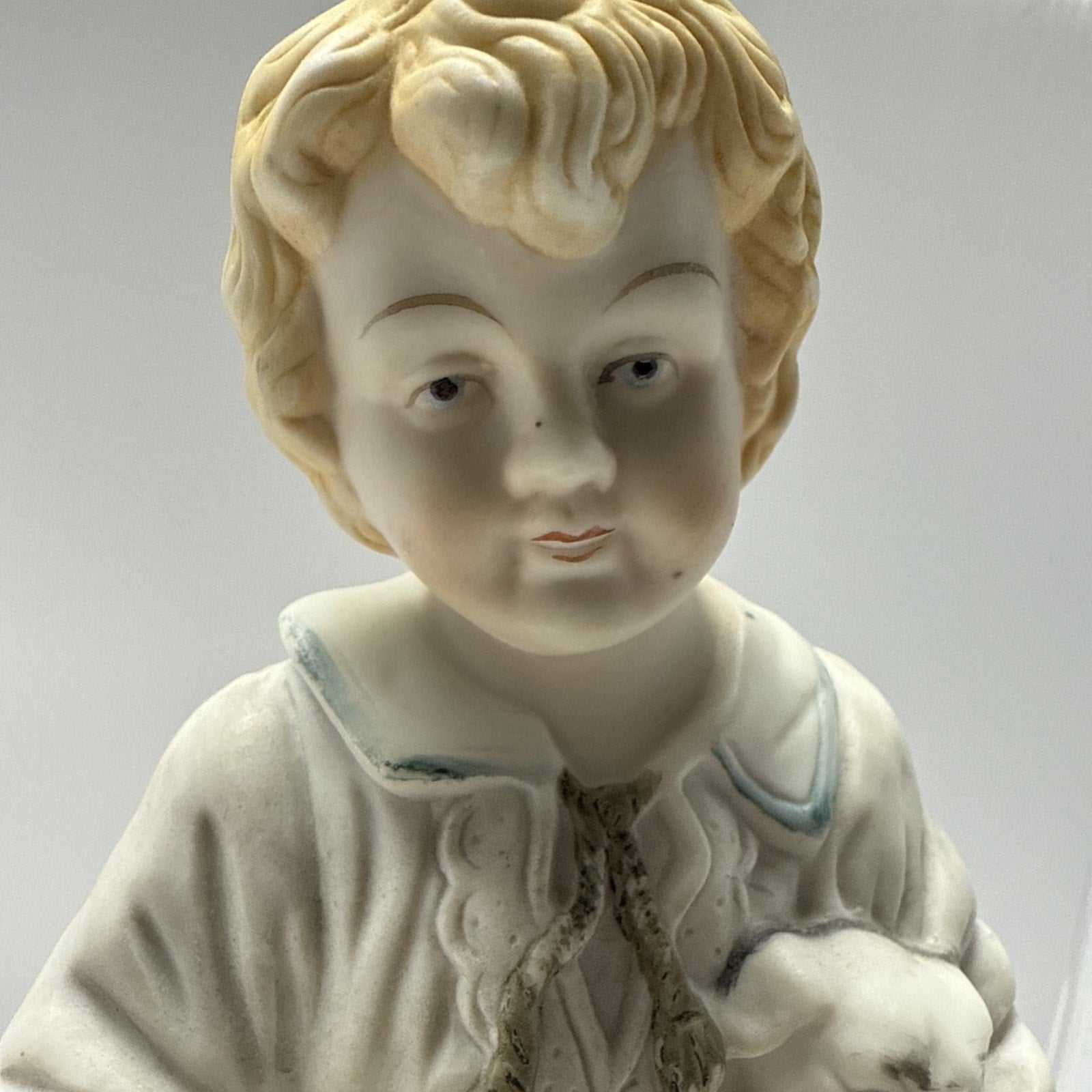 Vtg Pair Germany Bisque Porcelain Figurines Good Night Morning Boy Girl Puppy