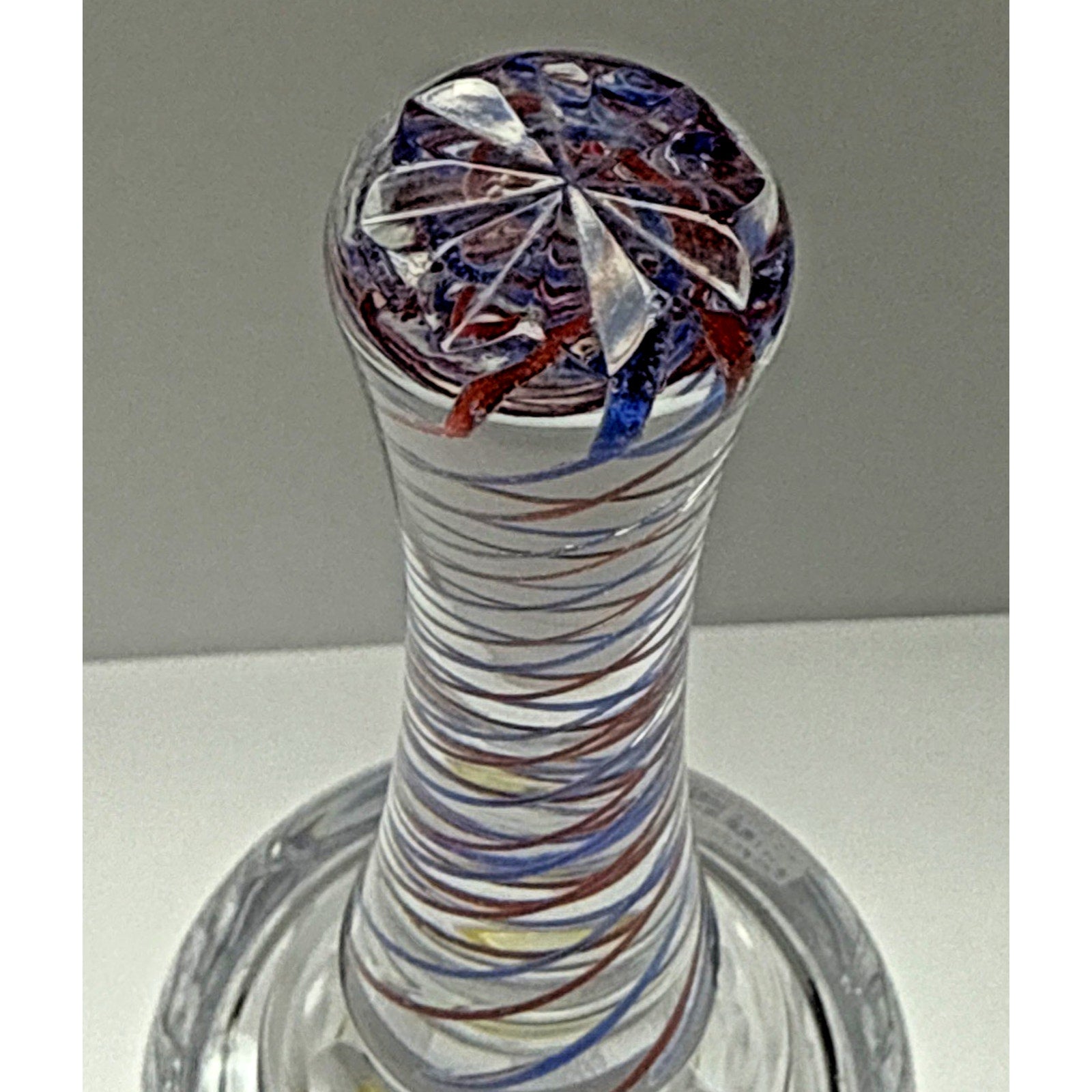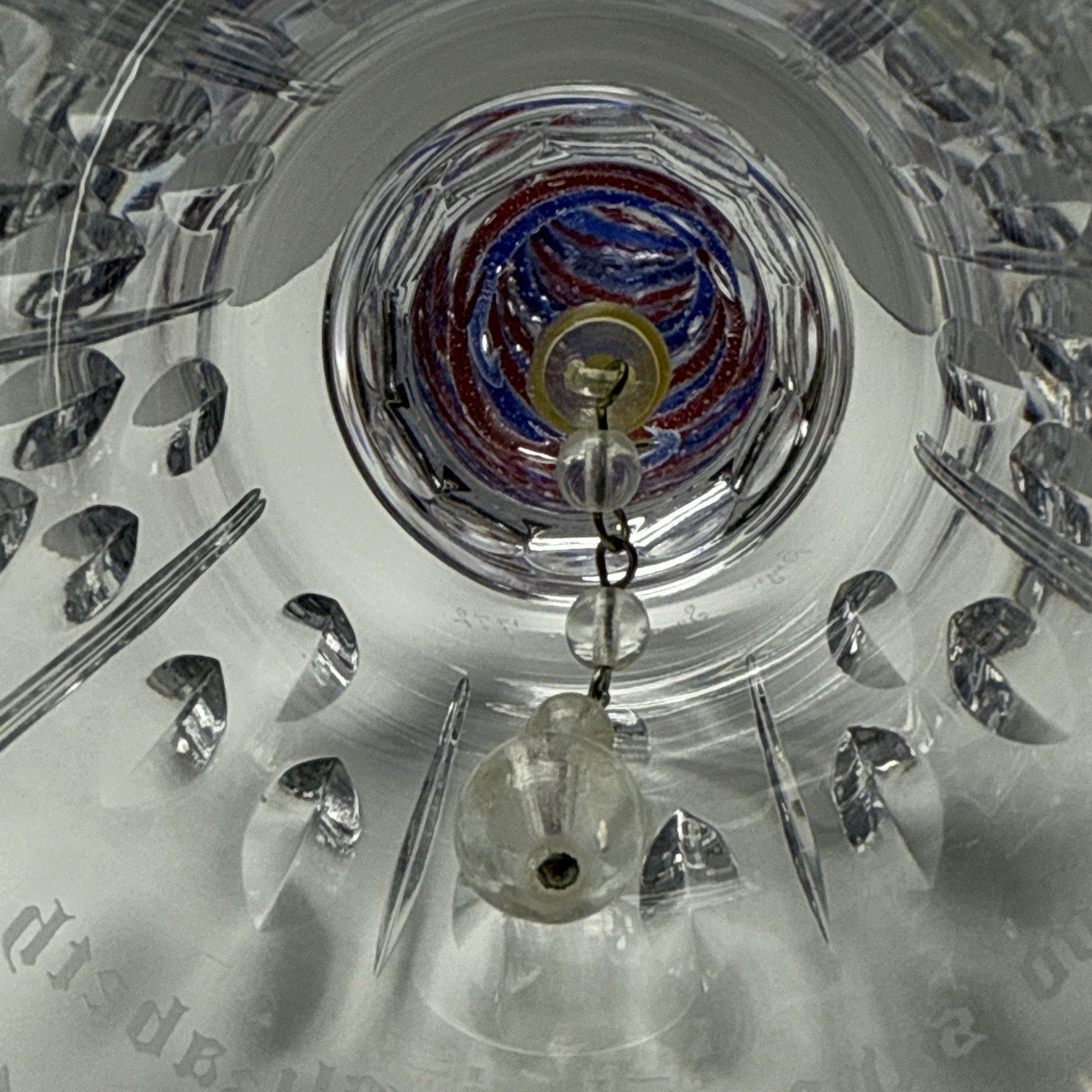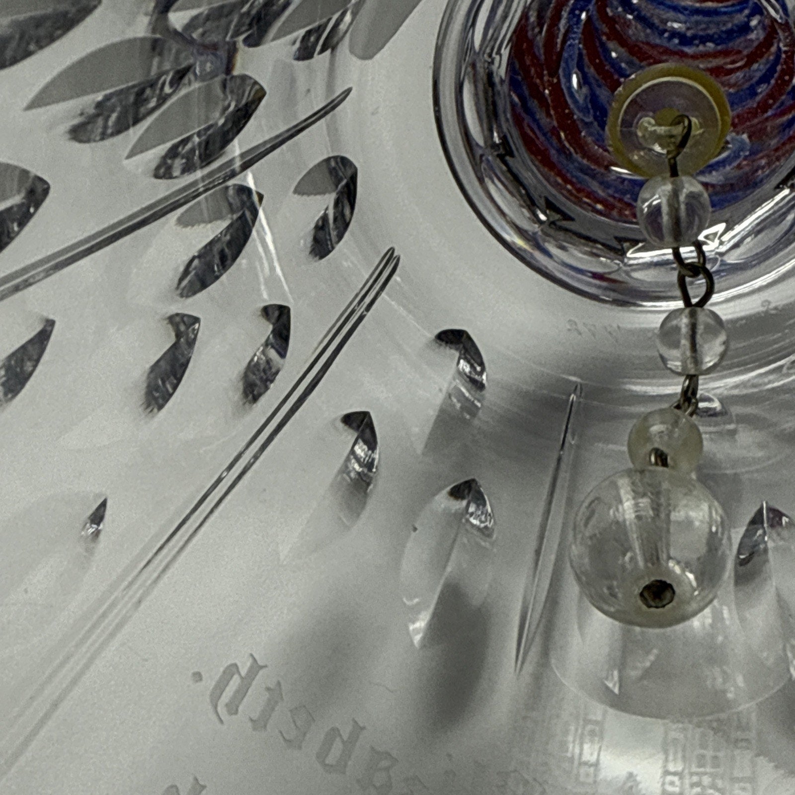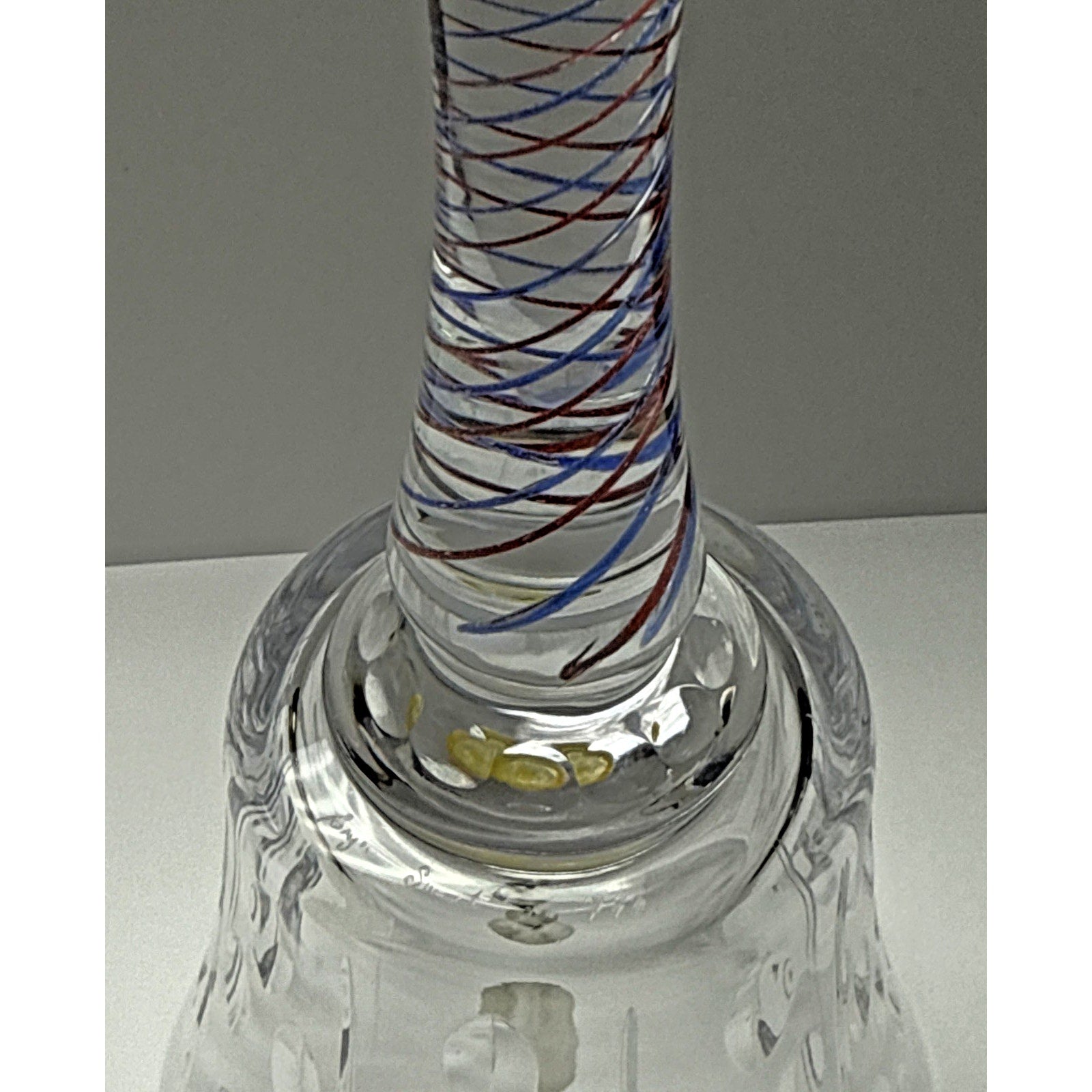 Stunning cut crystal bell with swirl handle. Bell stands approx. 7.5 x 3.75 inch diameter on the bottom. There are some scuffs and scratches.