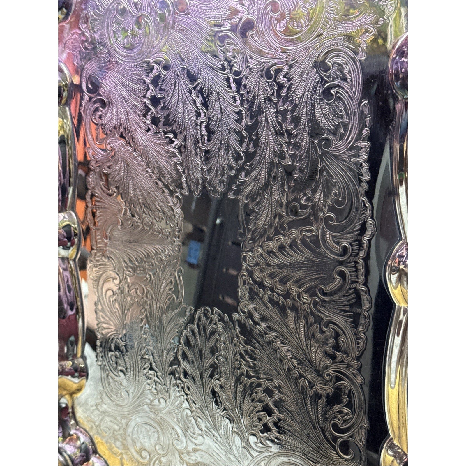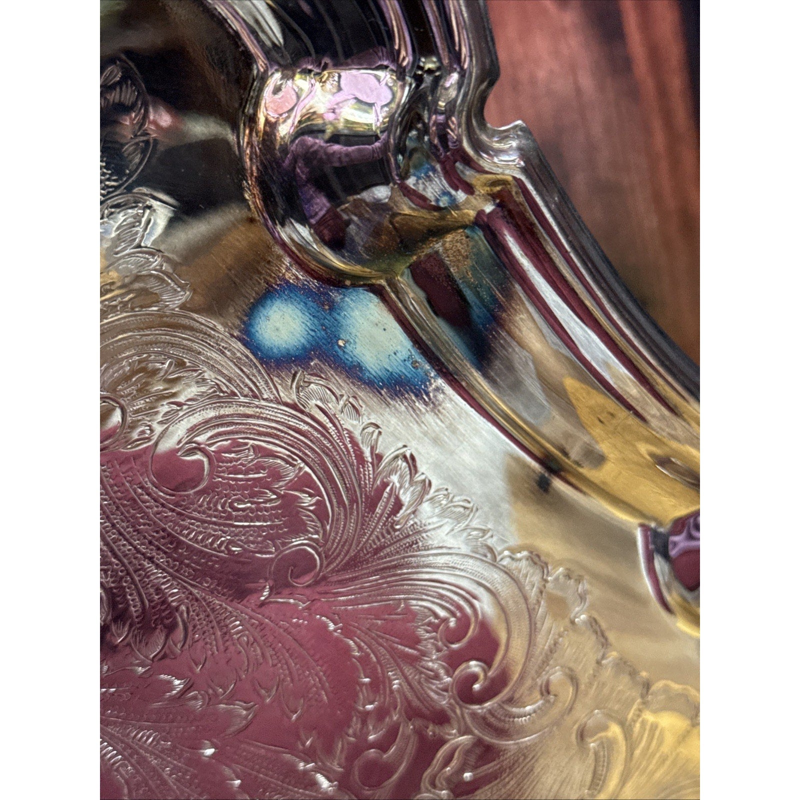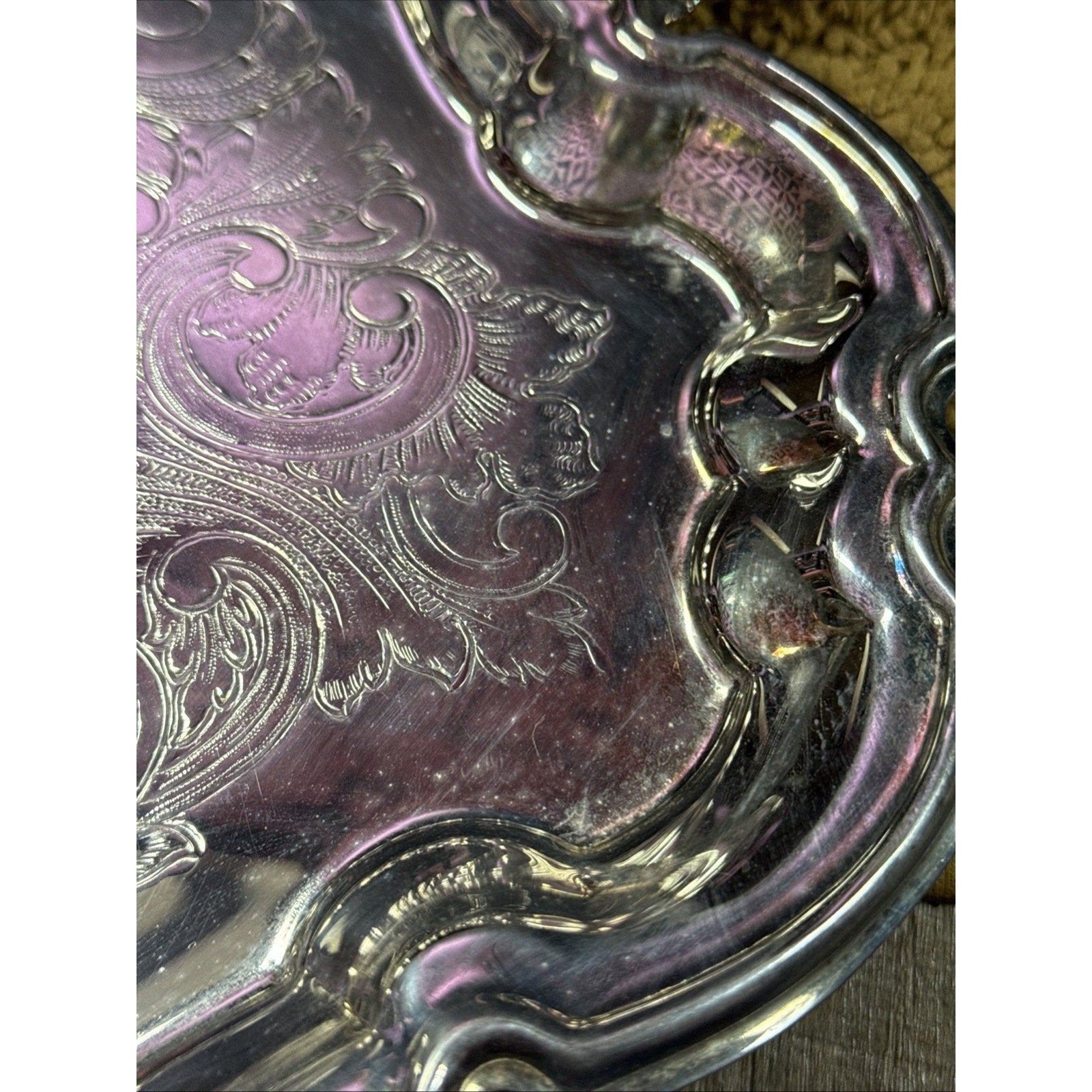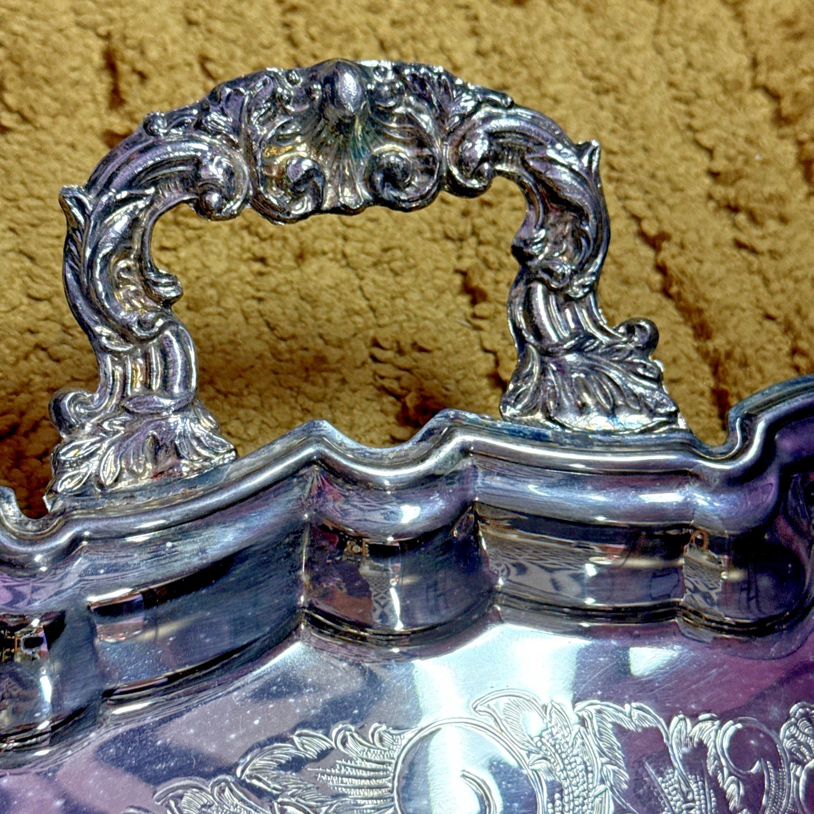 Vtg Silverplate Footed Serving Tray Butler Handles Ornate Engraved Rococo 23.5"