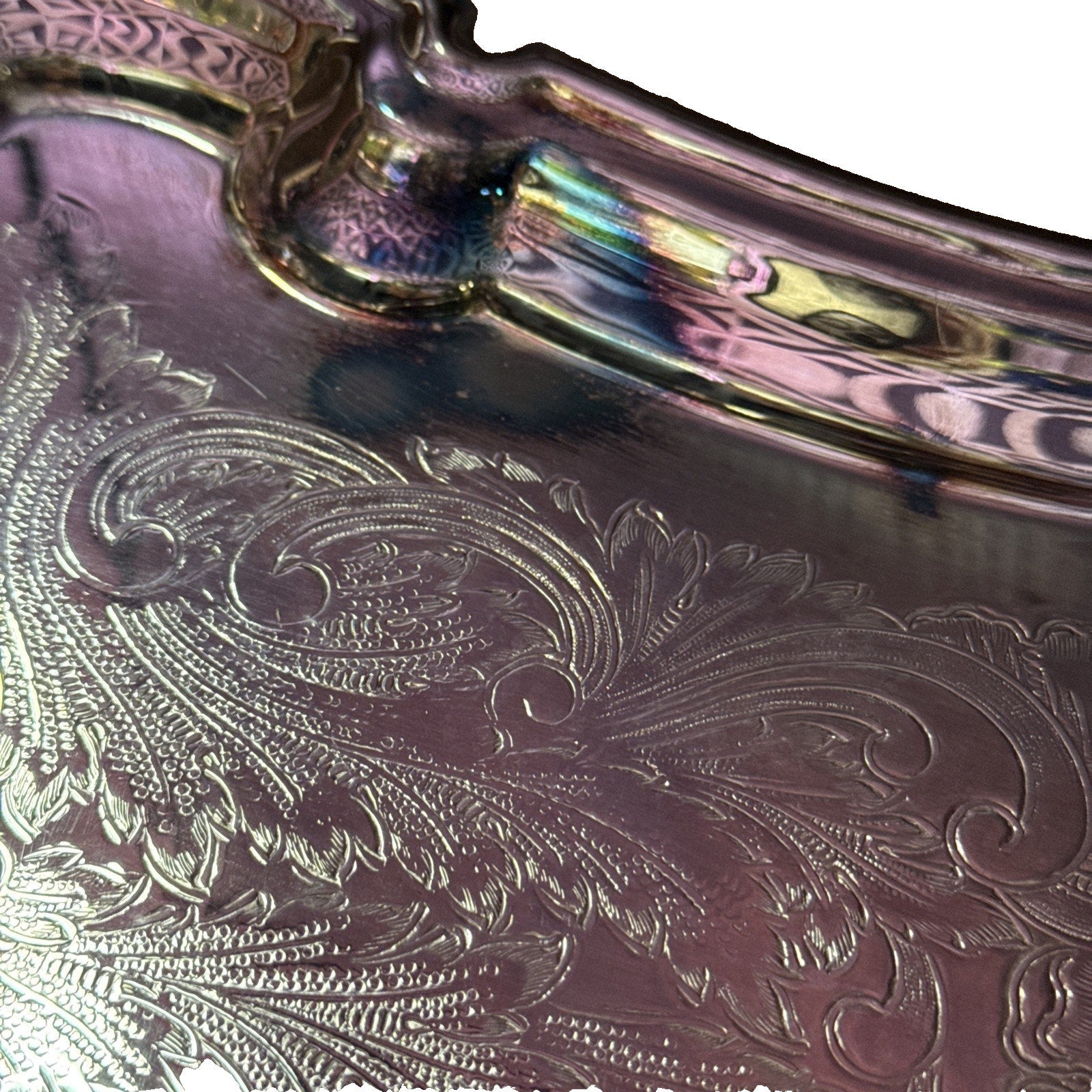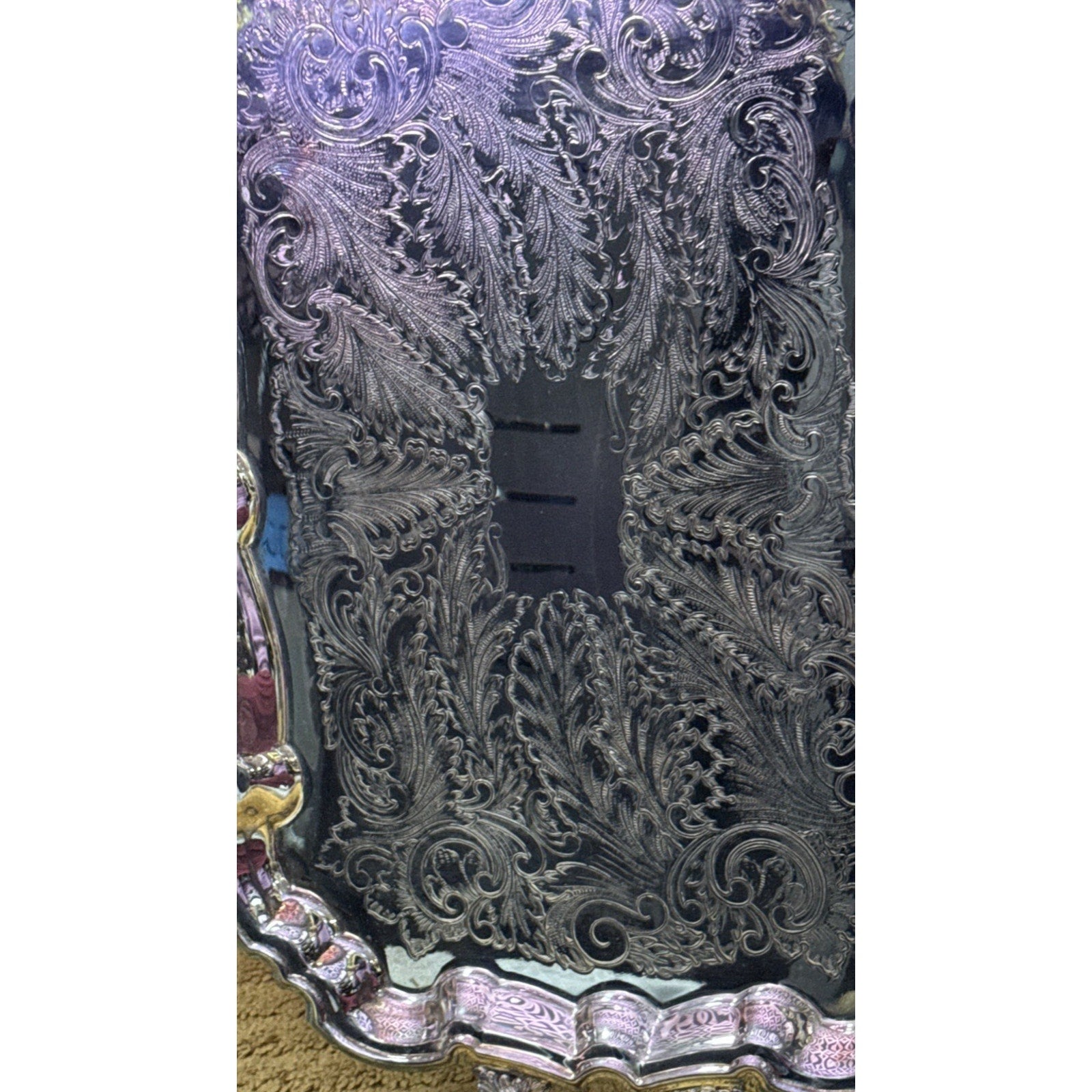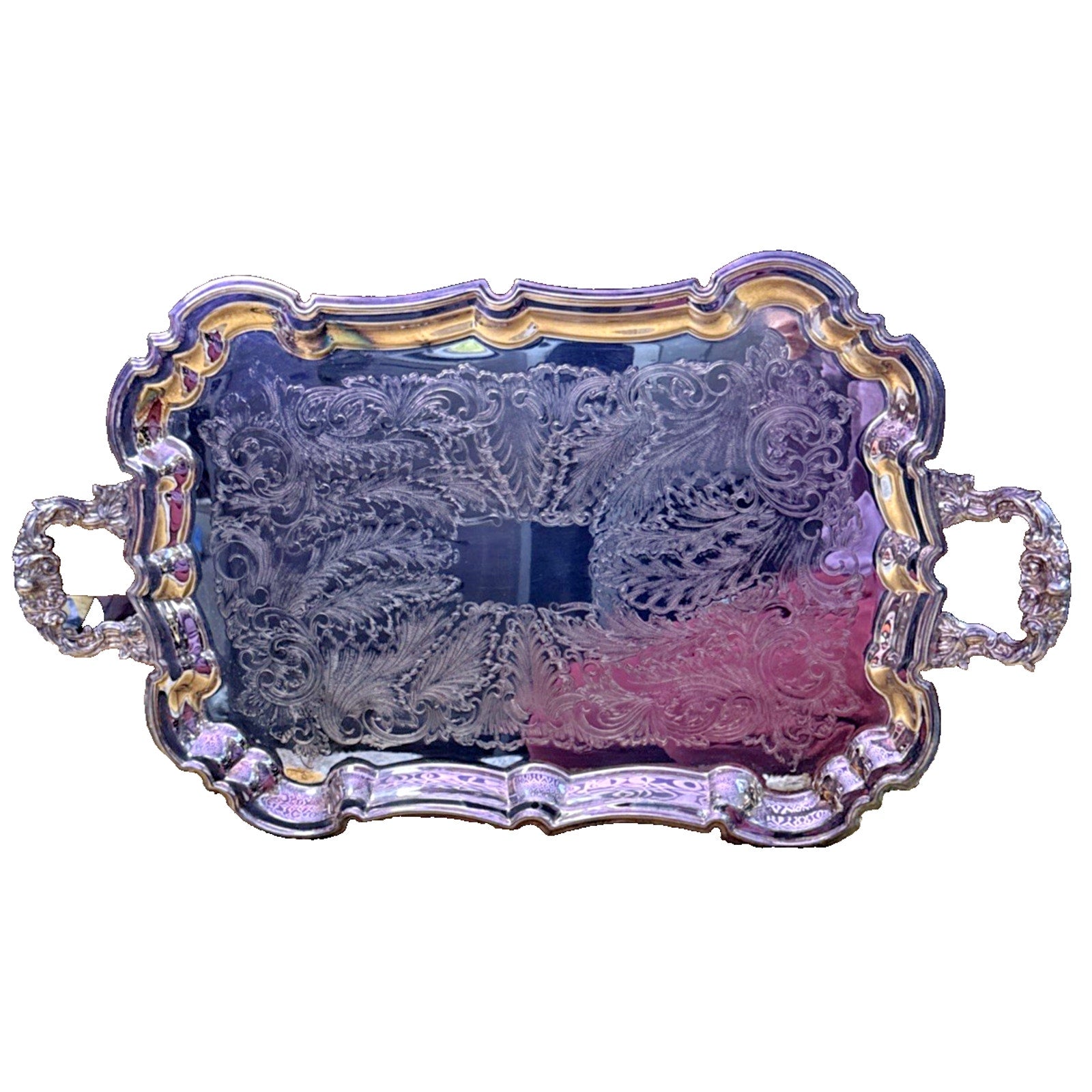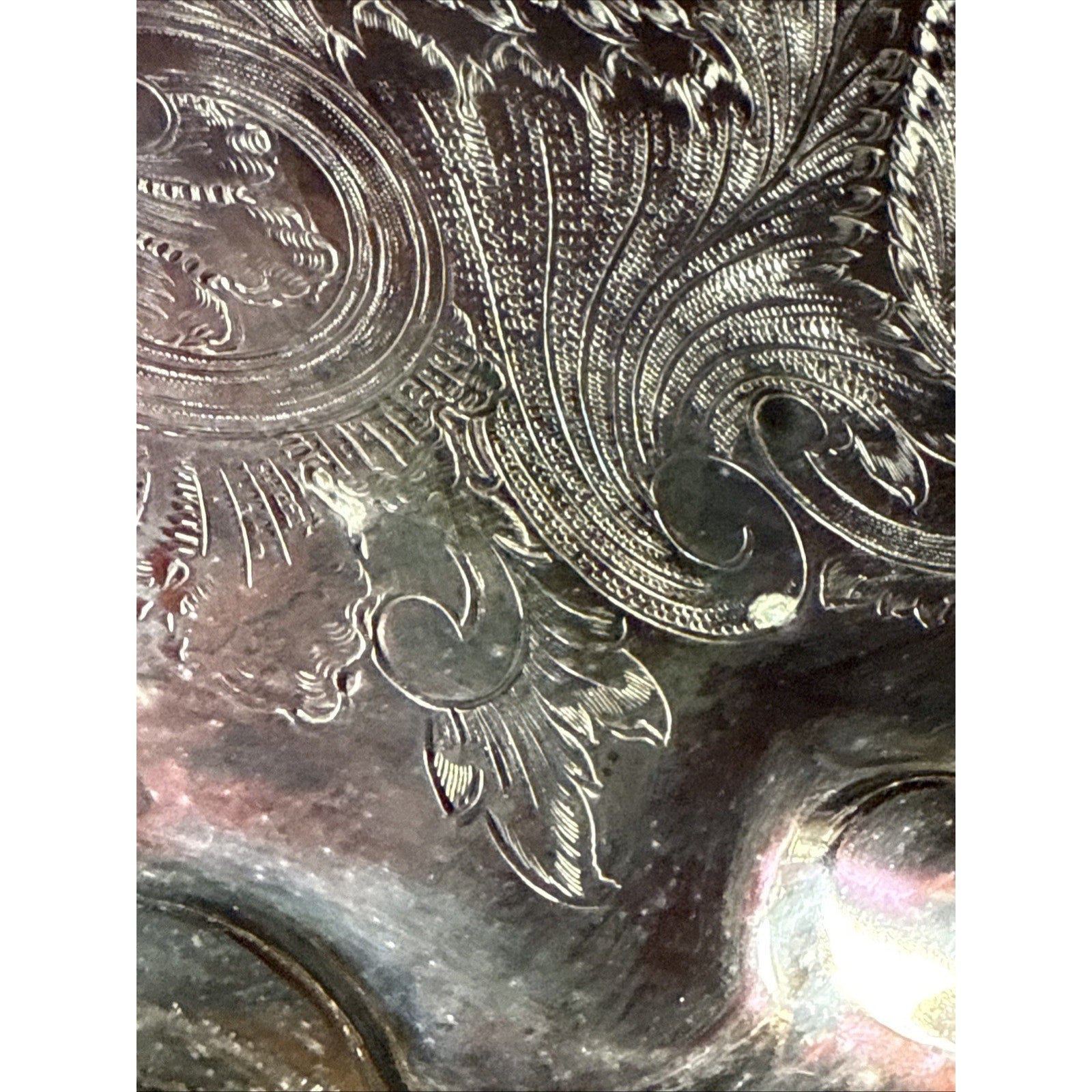 Vtg Silverplate Footed Serving Tray Butler Handles Ornate Engraved Rococo 23.5"