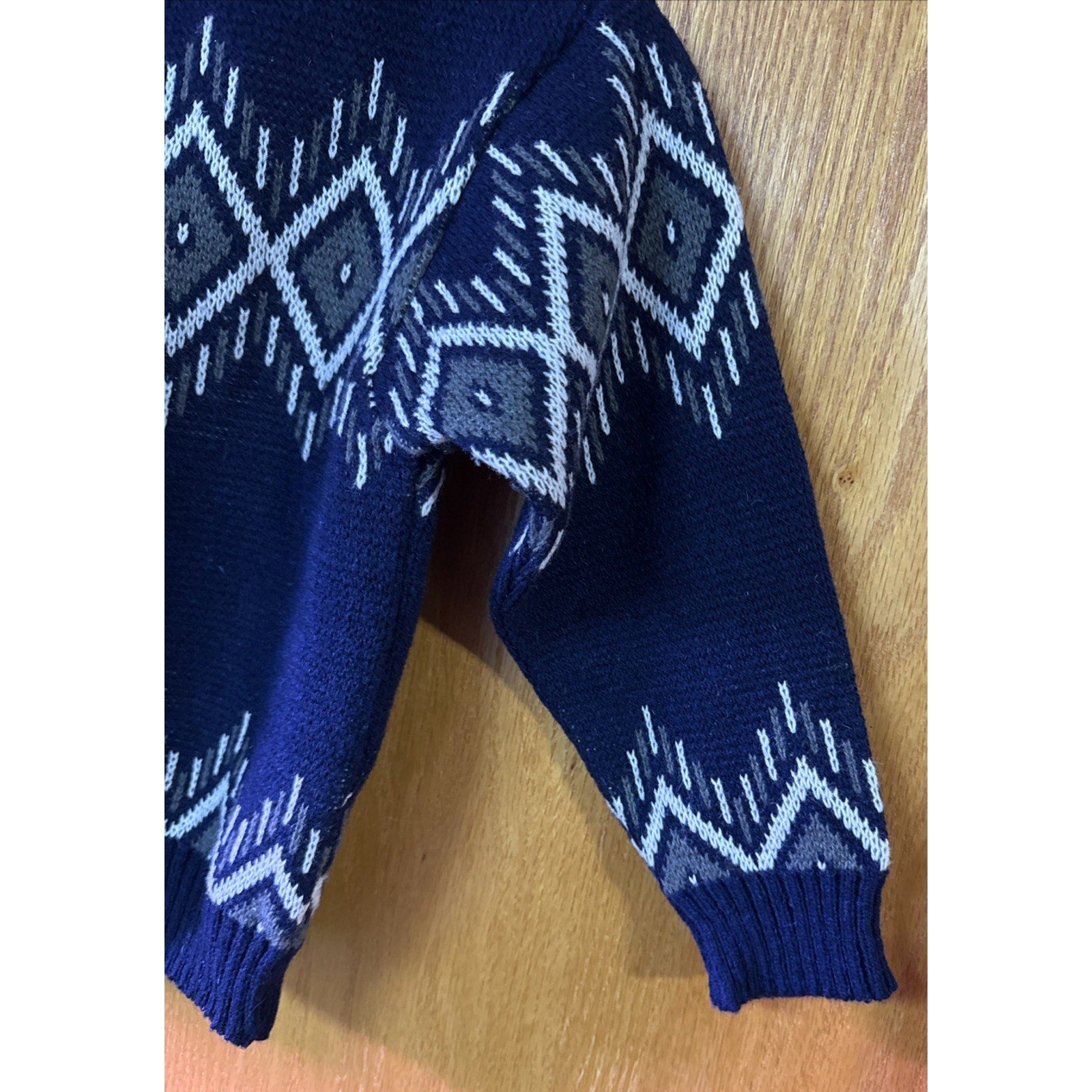 Vtg Skjaeveland Algard Norwegian Design Sweater Wool Childs Sz 6 Navy Gray White