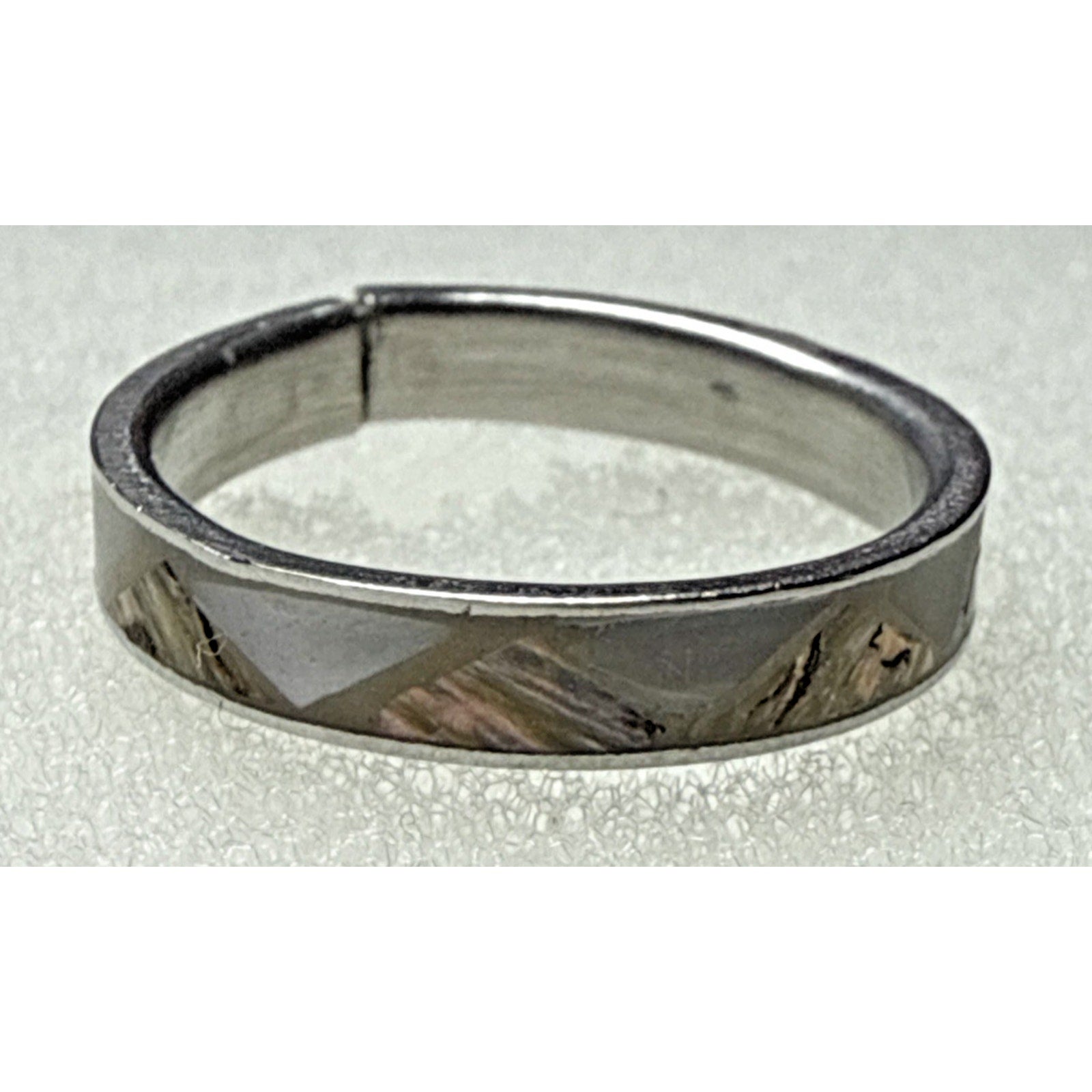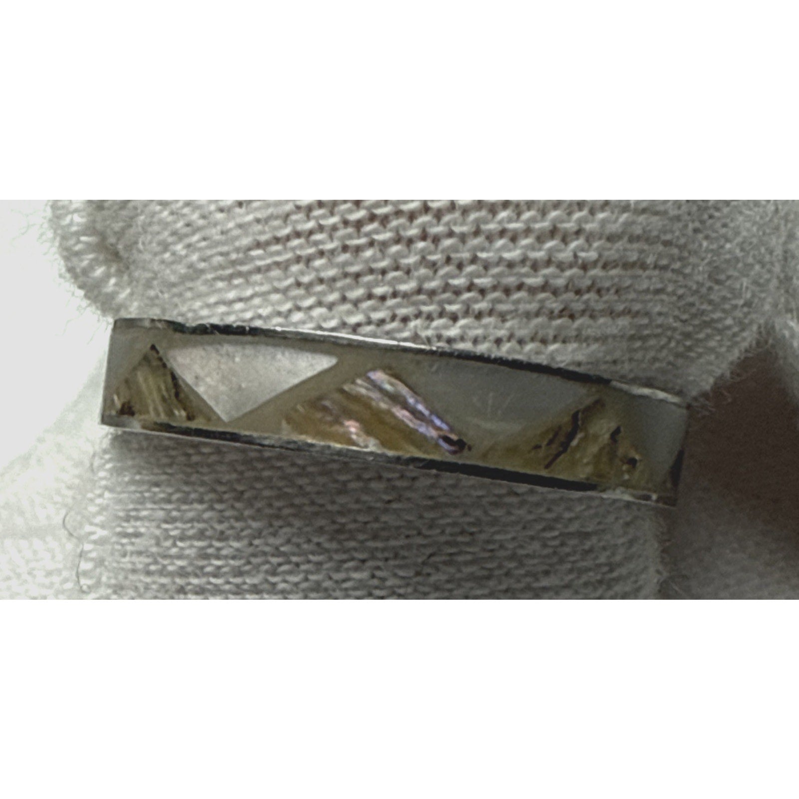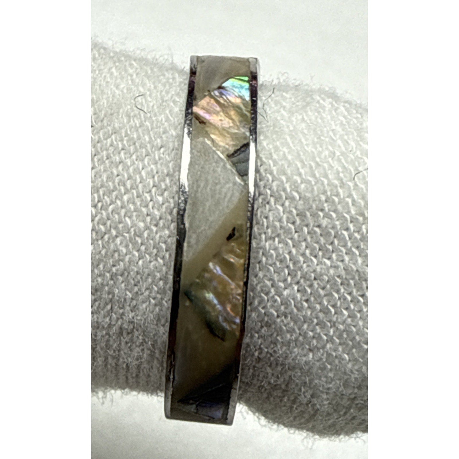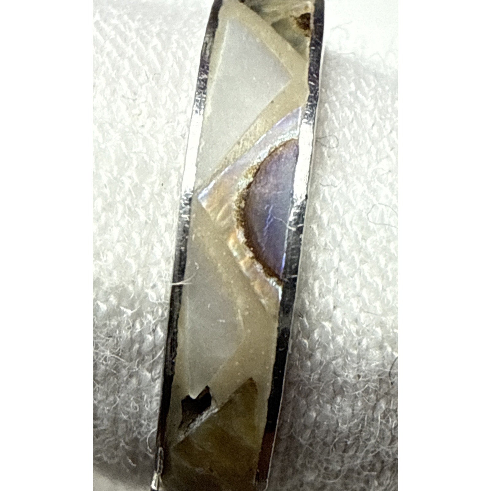Vtg Southwest Sterling Silver Inlaid Mother of Pearl Ring Zig Zag Sz 5.5 As Is