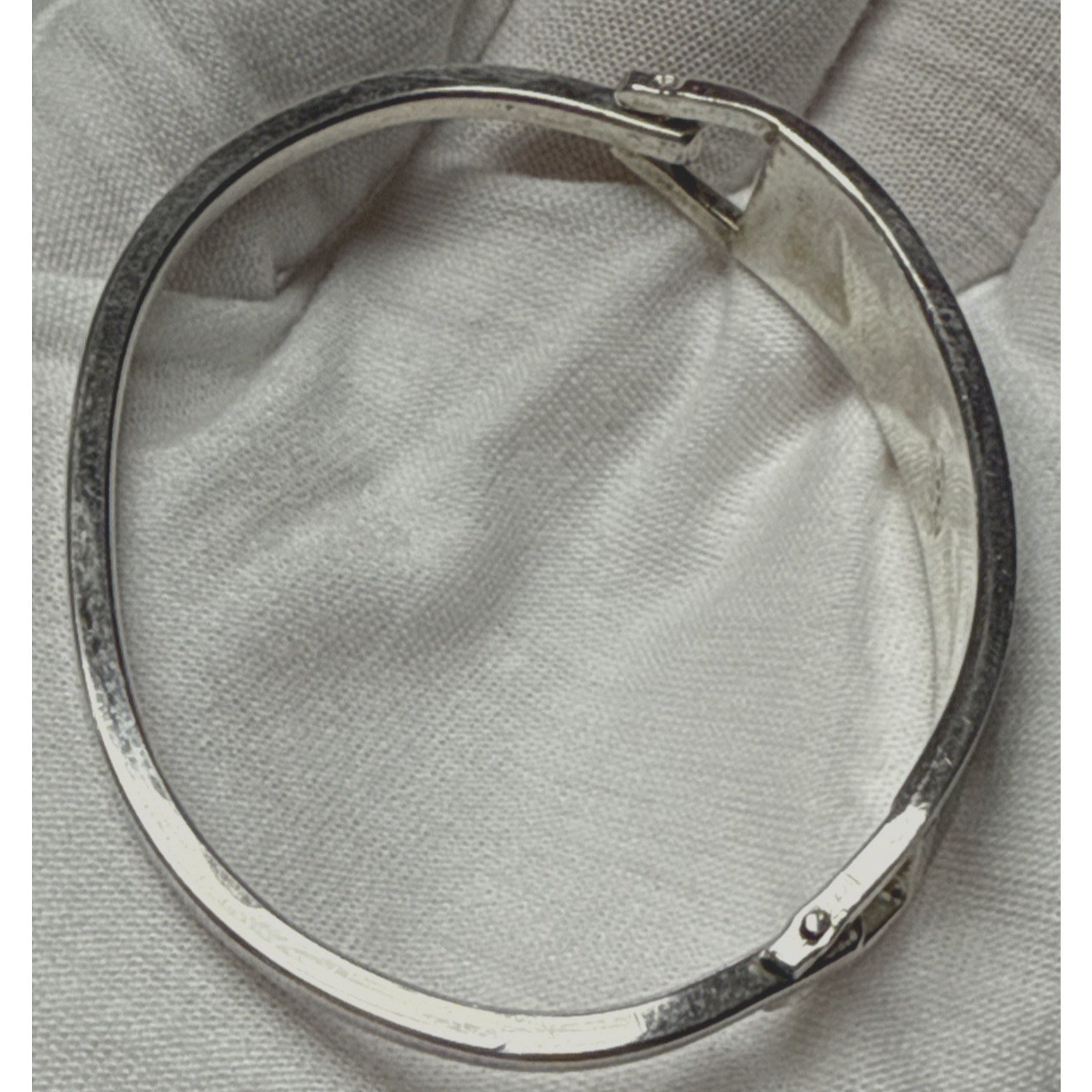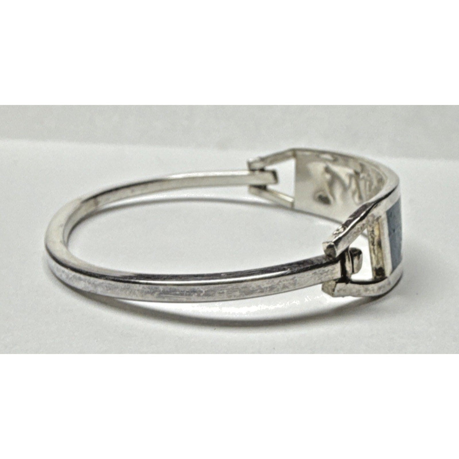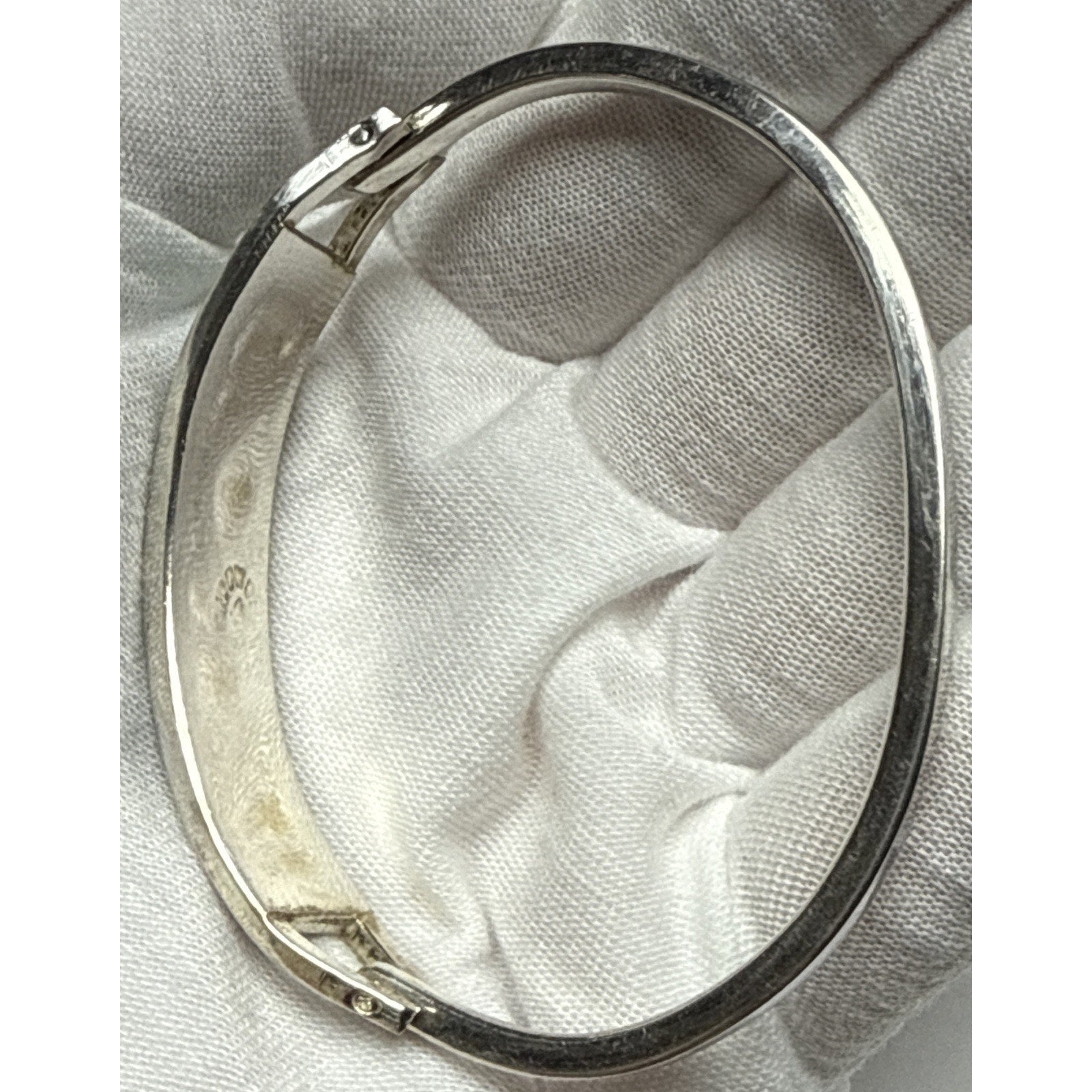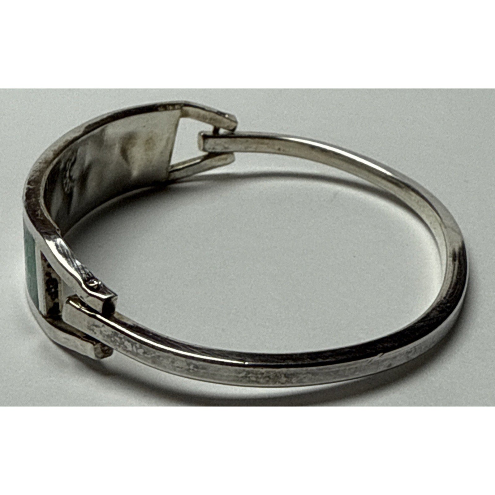 Stunning bracelet is in pretty good condition. There is wear such as scuffs and scratches. The marks are very hard to make out. I cannot verify if this is 925 sterling silver. I also cannot verify if the stones are authentic. The bracelet is small, sized approx 6.5 inches. The width is approx .5 inches.